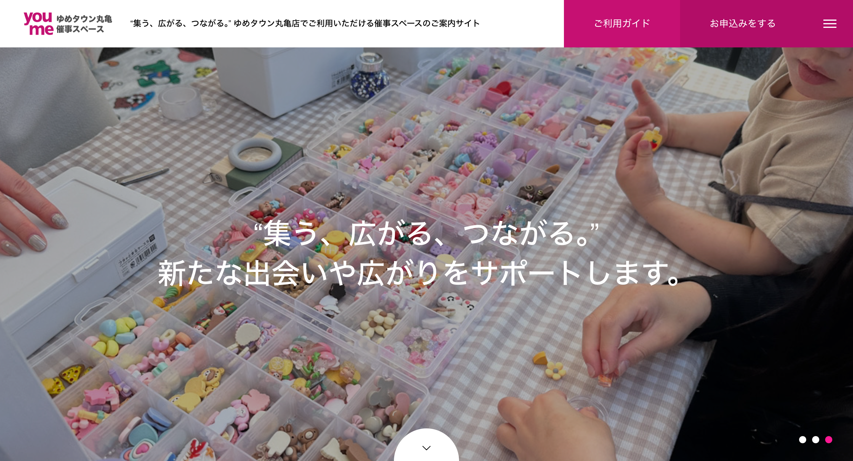 ゆめタウン丸亀店の催事スペースと利用者をマッチング。ビジネスのプロモーションやイベント、地域コミュニティの活動の場として、皆さまをつなげる場所です。新たな出会いや広がりをサポートします。